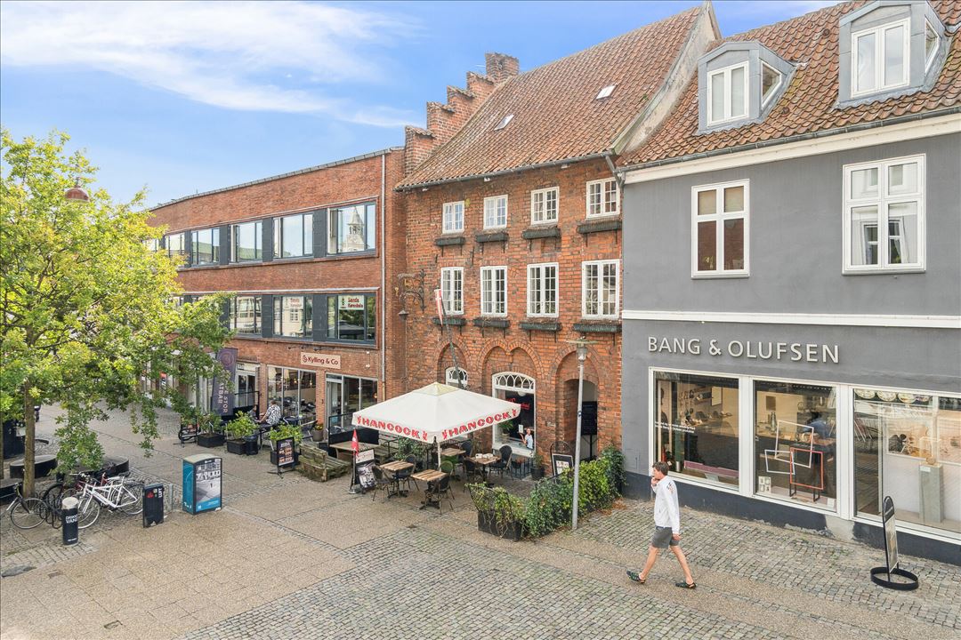 Nu udbydes byens ældste ejendom til leje midt i Randers Centrum.Lejemålet består af ejendommens 1. og 2. etage og udgør i alt 189 m² kontor, som man kommer til fra ejendommens baggård.