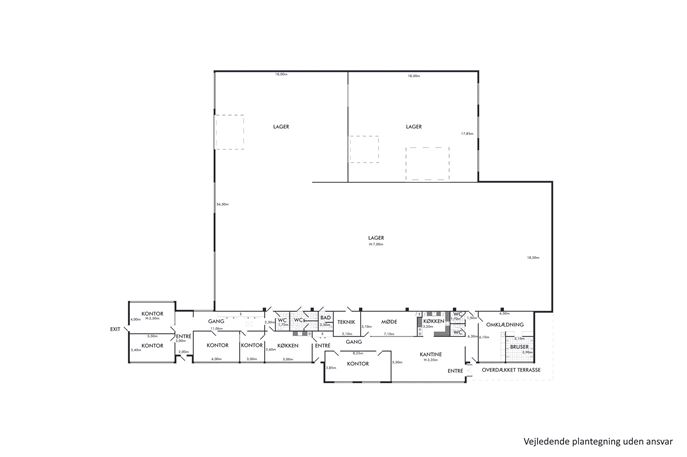 Kontoret fremstår i flot stand, og består af 4 særskilte kontorer, toilet, kontor/mellemgang med tekøkken. Gangarealer overvejende pålagt flotte klinker og alle kontorer på lagt tæppefliser. Overalt vandskurede/hvidmalede vægge. Endvidere stort konference lokale/kontor, stort mødelokale , rummelig kantine med adgang til stort åbent anretter køkken med alt i hvidevarer. Personaleindgang, 2 toiletter, stort omklædningslokale med 6 brusepladser, udgang til produktion-/lager.