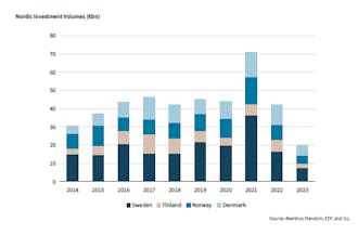 "Sverige står traditionelt for størstedelen af transaktionsvolumen i Norden. I Danmark har vi oplevet den laveste transaktionsvolume siden 2014, men det er værd at bemærke, at Danmark tegner sig for den næststørste volume i Norden i 2023, og i øvrigt også i 2022."