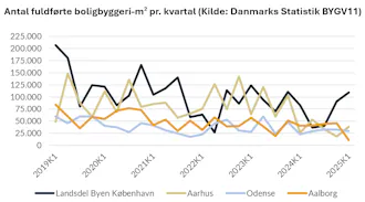 Samtidigt bygges der i mange byer og områder slet ikke nok for at imødekomme den stigende befolkning. I 2025 forventes det at blive påbegyndt 3.275.000 m2 nybygget boligbyggeri. 5.650.000 m2 i 2026 og 3.996.000 m2 i 2027. Af påbegyndt boligbyggeri i 2025 bliver 1.464.000 m2 bygget i Region Hovedstaden og 651.000 m2 i Region Midtjylland, Region Sjælland 517.000 m2, Syddanmark 451.000 m2 og Nordjylland 192.000 m2 (Kilde: Parabyg).
