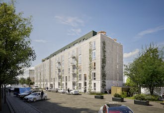 ”De fremtidige beboere i de 32 lejeboliger bosætter sig i en spirende bydel, der bærer præg af urbane omgivelser, og hvor alle hverdagens nødvendigheder som fx Lergravsparkens Metrostation, caféer, indkøbsmuligheder og sportsaktiviteter allerede er etableret og inden for kort afstand.”