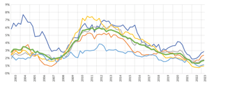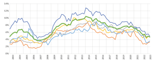 På landsplan udgør andelen af ledige detailhandelslokaler 2,9% for 2. kvartal 2023, hvilket er en stigning på 0,2 procentpoint sammenlignet med forrige kvartal. Siden samme kvartal forrige år er tomgangen steget med 0,3 procentpoint.