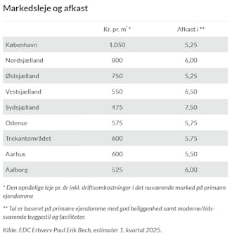 Tomgangen på industri- og logistikejendomme har på landsplan været kraftigt stigende det seneste år, hvor tomgangen er steget fra 1,9% i 4. kvartal 2023 til 2,9% i 4. kvartal 2024. Afkastkravene vurderes stabile i det kommende år, og det samme er tilfældet for markedslejen.