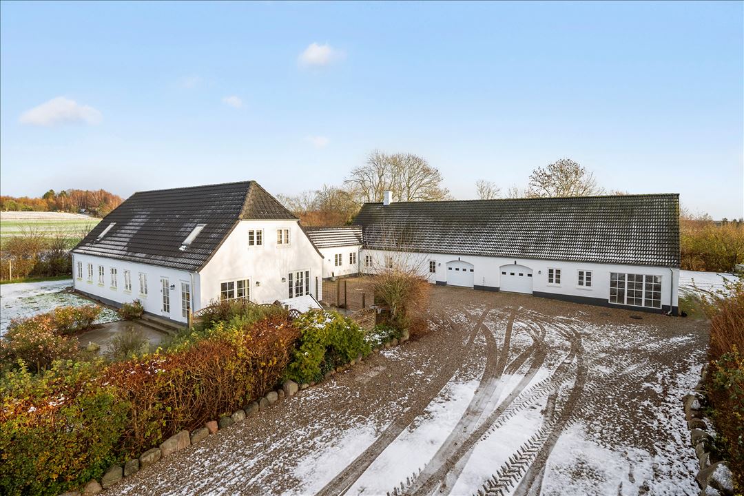 Nyistandsat landejendom med 6,4 ha velbeliggende jordDenne landejendom fremstår indflytningsklar og funktionel med et samlet jordareal på ca. 6,4 ha, som ligger praktisk og harmonisk omkring ejendommen. Stuehuset er fra 1941, opført i mursten med betontagsten, og rummer 272 m² bolig, heraf 95 m² på 1. sal. Derudover er der ca. 80 m² bryggers, entré og badeværelse.