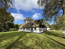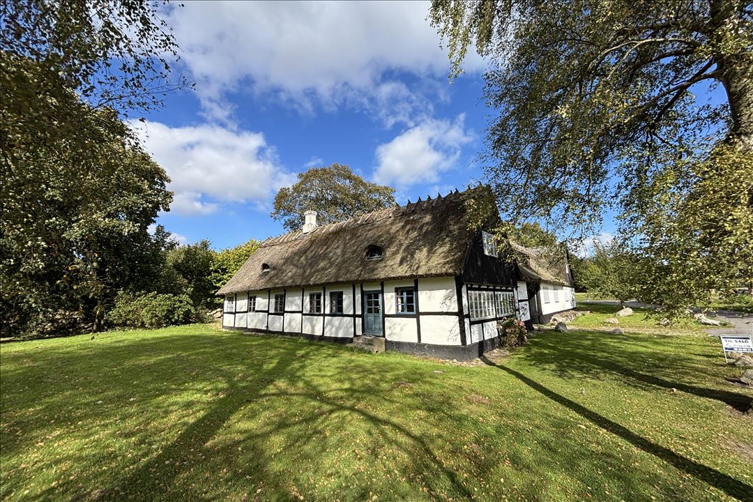 Selve ejendommen er bygget i bindingsværk og fremtræder med solidt stråtag på boligdelen, der er indrettet på hver sin side af den hyggelige vognport. Ejendommen har siden 70-erne kun været benyttet som fritidsbolig og fremtræden svarer også til dette, med en hyggelig og afslappet atmosfære overalt.