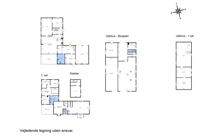 Ejendommens udhus giver plads til at udfolde drømme og projekter: dyrehold, pladskrævende hobbyer, værksted eller maskiner. På førstesalen finder du den nuværende gildesal - oplagt til festlige stunder, men med potentiale til at blive alt fra atelier til showroom.