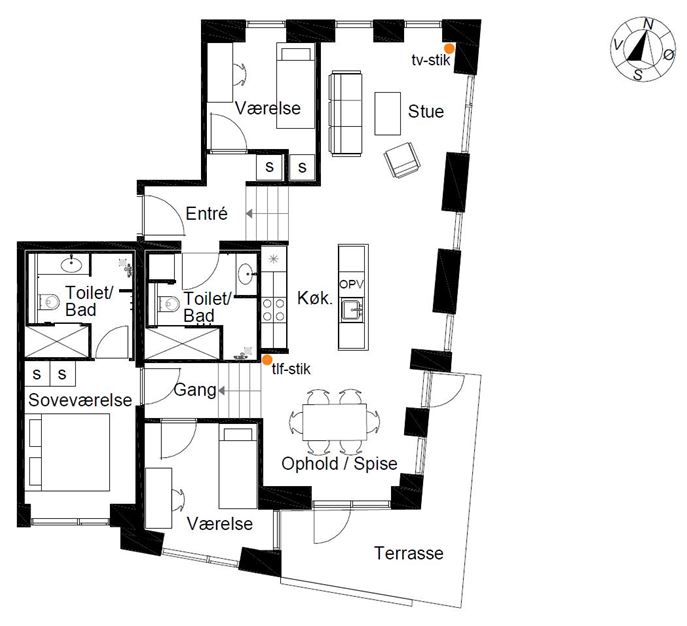 - Rum/værelser