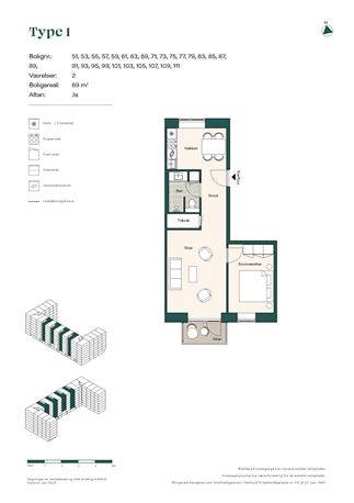 156 lejeboliger på 59-95 m2 og 2-4 værelser.