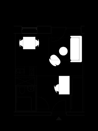 Velindrettede og lyse etværelses lejligheder med eget bad, køkkenniche og fransk altan.