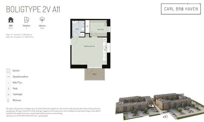 Nybygget ejendom fra 2024 med 198 nye 2 – 5 værelses lejeboliger på 53 – 141 m2 med altan eller terrasse.
