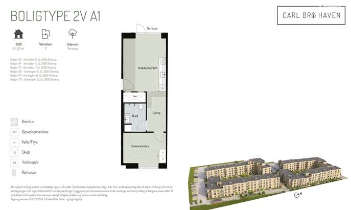 Nybygget ejendom fra 2024 med 198 nye 2 – 5 værelses lejeboliger på 53 – 141 m2 med altan eller terrasse.