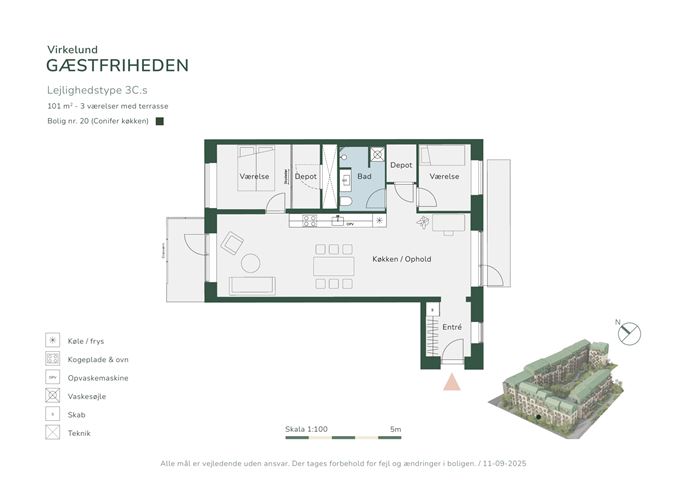 Nyopførte lejligheder i Virkelund i Coop Byen.Velplaceret 3-værelses lejlighed på 101 m² med adgang til privat terrasse. Boligen har et moderne køkken i åben forbindelse med stue, to værelser, to depotrum og praktisk vaskesøjle. Ideel planløsning i grønne omgivelser med god opbevaringsplads.