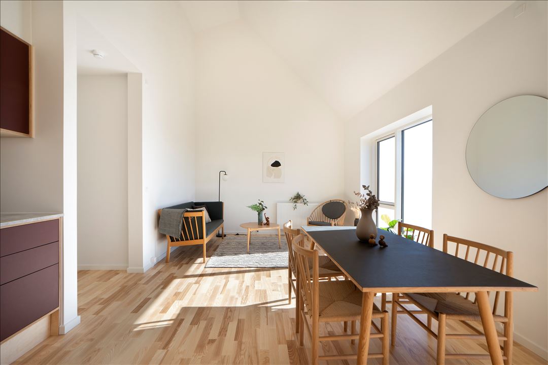 I Gæstfriheden er der boliger til alle. Her kan enlige, par, familier og modne voksne finde deres hjem med perfekte private rammer kombineret med omgivelser, der indbyder til fællesskab. I første etape udbydes 61 boliger, der spænder mellem 2-værelses fra 60 kvadratmeter til 5-værelses taglejligheder på 137 kvadratmeter. Der er derfor rig mulighed for at finde lige netop dén bolig, der passer dig.
