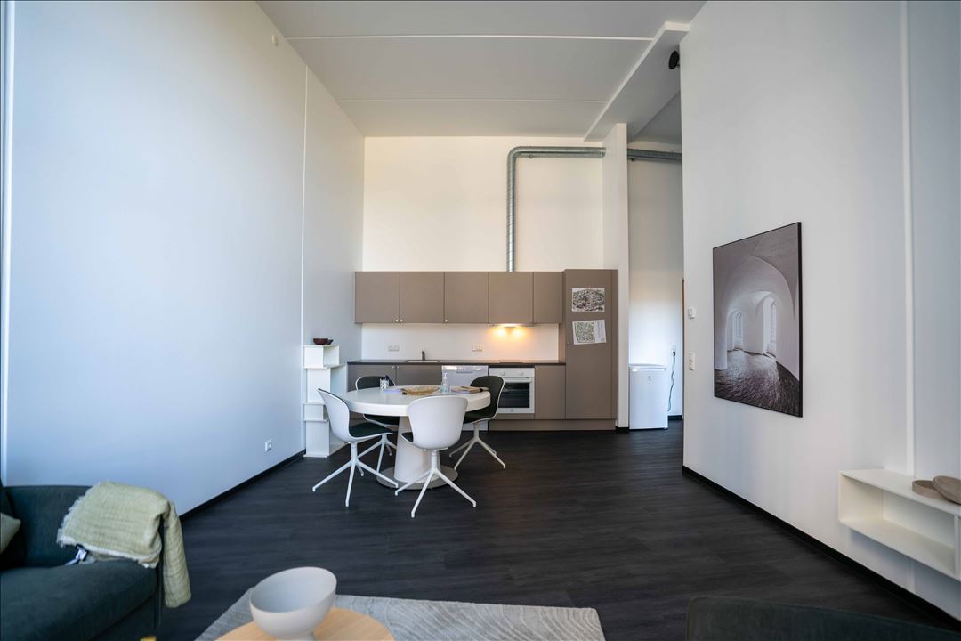 Det 6-etagers, unikke og prisvindende boligbyggeri er tegnet af Lars Gitz Arkitekter og omfatter, udover studieboliger, 147 udlejningsboliger fordelt på kategorierne Apartments og Company Apartments.