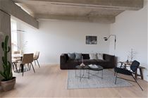Træd ind og føl dig hjemme på de mat lakerede trægulve, der står i kontrast til det rå betonloft med et sandblæst udtryk og de hvide vægge, der sætter stilen i din nye bolig. Kontrasten mellem det lyse og lette gulv og det rå, hårde betonloft bringer en dynamisk indretning til live, så boligen emmer af moderne nordisk design.