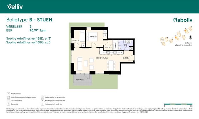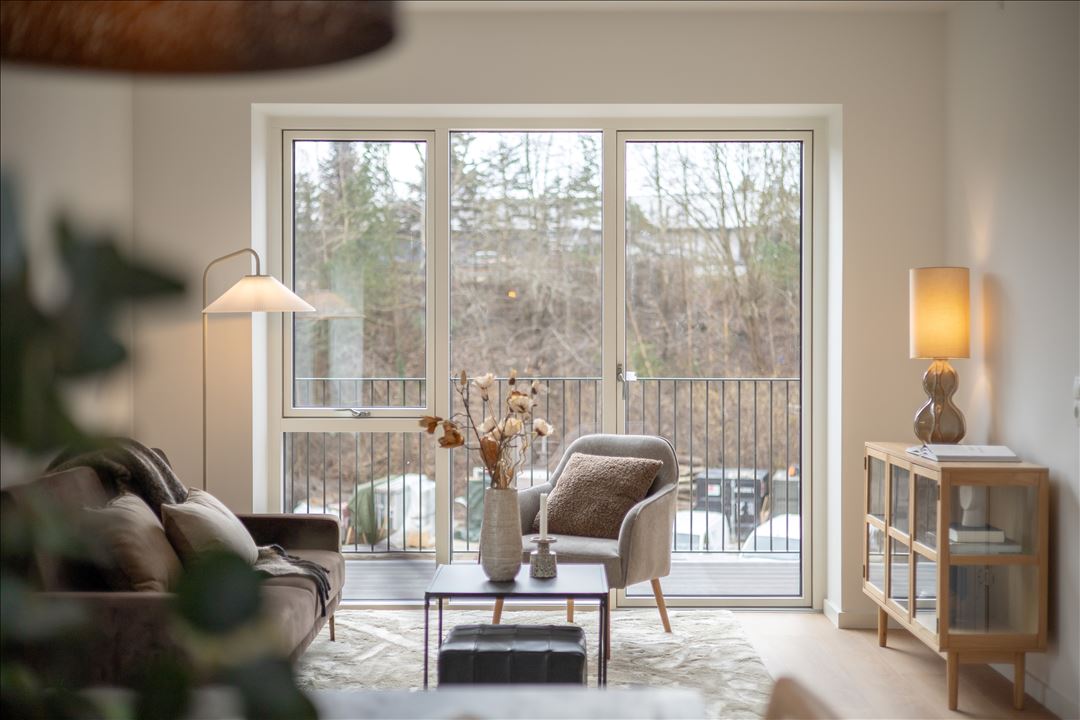 8 punkthuse danner rammen om 110 boliger, mens et multifunktionelt fælleshus, et drivhus, legeplads og en masse andre faciliteter giver fællesskabet i Naboliv Birkerød de bedste forudsætninger for at spire.Alle boligerne er indrettet i en lys nordisk stil med lækre køkkener fra Invita, praktiske laminatgulve og indbyggede skabe og depotrum. Dørene er massive og lyset flyder naturligt ind ad de store vinduespartier.