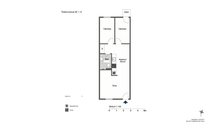 De to fine soveværelser byder på komfortable og smarte indretningsmuligheder, hvor vinduerne sikrer rigeligt naturligt lys. Det ene soveværelse har endda den ekstra fordel af en lille altan, hvor du kan nyde frisk luft og måske en kop kaffe om morgenen. Den store stue er det perfekte samlingspunkt og de store vinduer skaber en lys og indbydende atmosfære. Med rigelig plads til sofaafdeling og opholdsområde kan du skabe den ideelle ramme for afslapning og underholdning. Køkkenet er udstyret med velfungerende hårde hvidevarer og skaber her et område, der fungerer som hjertet af hjemmet og giver mulighed for sociale sammenkomster mens madlavningen foregår. Det rummelige badeværelse er elegant indrettet med moderne armaturer og tilbyder en afslappende atmosfære. Her kan du starte eller afslutte dagen med stil.