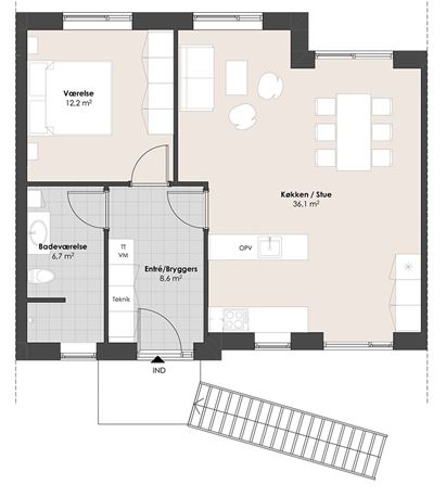 Alle boligerne er lyse og indbydende og findes i størrelserne 2-5 værelser. På badeværelse og i entré/bryggers er der grå klinker på gulvet, mens der i de øvrige rum er lyse laminatgulve med egetræslook. Der er faste hvide HTH-elementer i køkken, bad, værelser og entré/bryggers. Alle boliger er udstyret med fuld hvidevarer pakke. Dertil kommer, at der er installeret ventilationsanlæg og gulvvarme i hver bolig, hvilket giver et godt indeklima og stabil varme.Der kan gives særskilt tilladelse til én enkelt hund eller én indekat.
