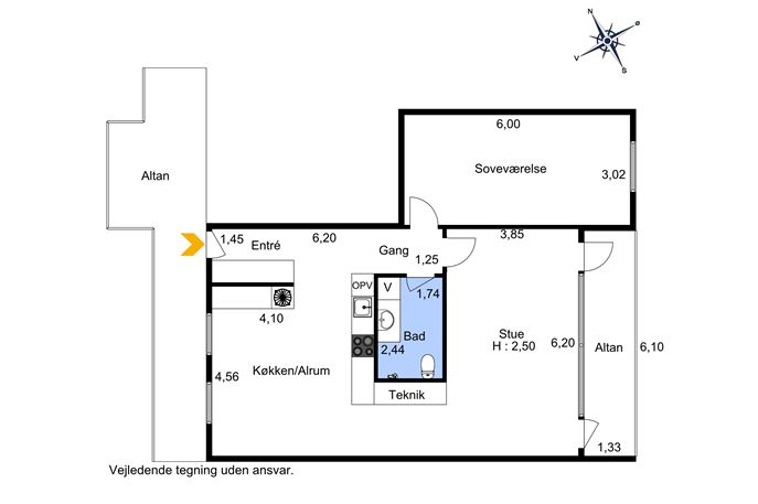 Lejligheden er 95 m2 og indeholder1 soveværelse, stort køkken alrum, rummeligt badeværelse med brusekabine samt en fin lys stue med direkte udgang til lejlighedens vestvendte altan. Lejligheden er udstyret med opvaskemaskine, vaskemaskine med tørretumbler.Der er parkering til lejligheden.
