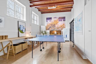 Du kan bruge salens oprindelig ribber og bom til at lave armhævninger og anden morgenakrobatik, så ofte du orker. Du kan snuppe en bordtennismatch efter arbejde, og skal der holdes børnefødselsdag for hele klassen eller stor fest for familie og venner, er der også god plads til det i den fint bevarede gymnastiksal, der hører til denne smukke gamle skole i Stenderup mellem Horsens og Vejle.