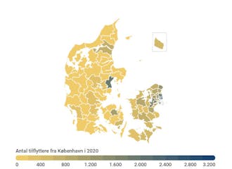 Siden 2016 har befolkningstilvæksten i København været aftagende. Efter at hovedstaden gennem mange år er vokset med godt 1.000 nye indbyggere hver måned, er udviklingen i det seneste år reduceret til mindre end 500 nye beboere om måneden. Udviklingen er særlig markant i 2020, hvor coronakrisen kan have øget interessen for at bosætte sig udenfor byen. Men hvor flytter de hen?