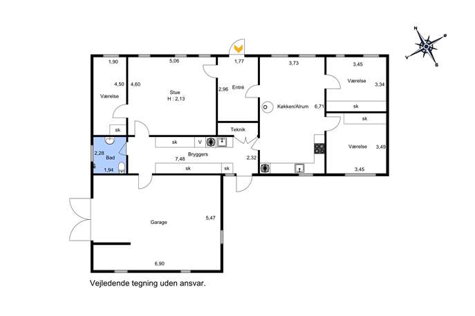 Boligen rummer et lyst og indbydende køkken med brændeovn og plads til et stort spisebord. Herudover er der tre gode værelser, alle med god skabsplads, og et praktisk bryggers, hvor både jord­var­me­an­læg­gets unit samt vaskemaskine er placeret. Loftsrummet er uudnyttet og giver mulighed for ekstra opbevaring eller eventuelle fremtidige udvidelser. Husets badeværelse er stilrent og med samme klinker som går igen i bryggers og køkken.